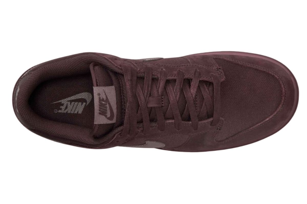 This Nike Dunk Low features Twill on the base, leather Swoosh logos and heels, and suede overlays. As you can see, the shoes come with Burgundy across the entire upper, including the tongue labels, insoles, tonal branding, and embroidered Nike on the heels. Adding to the premium theme are waxed laces. Finishing the look is Burgundy on the midsole and a lighter shade on the rubber outsole.
