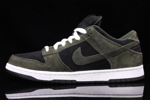Yesterday you guys got a preview of two new Nike SB dunks that are expected to drop later this month. Happens to be that one of those Dunks are the Nike SB Dunk low ‘Un-loden’. Dubbed ‘Un-loden’ due to its similar colorway to an 2002 Nike SB dunk low, the Nike SBย dunkย ‘Loden’. Much likeย ‘Lodens’ย this Dunk low features an all suede upper,ย with aย dark army suedeย on the toe, eyelets, swoosh and heel panels. Aย clean black suedeย canย also be seen taking place on the toebox and side panels, while white laces, and a white midsole helps to contrast the shoe. The Nike SB Dunk low ‘Un-loden’ should be hitting Nike SB retailers soon, but in the mean time continue after the jump to get a better look at this shoe. via Premier.