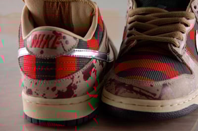 We saw the Nike SB Trainer Dawn of the Dead, now here is another preview of the Nike Dunk SB Low Freddy Krueger which is apart of the upcoming Nike SB Horror Pack. On the toe box, sides and heel feature the same flannel material of Freddy Krueger’s Shirt, blood splatter on various places, and the insole contains the same burned skin of Freddy’s face. Expected release date is in November. Via Colmilludo.