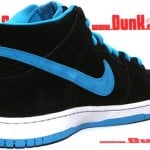 Some of the May Nike SB releases have yet to hit skate shops, but we have a look at a Nike Dunk SB Mid releasing June 2011 as a quckstrike. Featuring a Black and Orion Blue colorway, this Nike Dunk SB Mid also consists of a black nubuck upper, Orion Blue Nike Swoosh, and a white midsole.