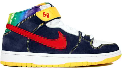 Nike SB is no stranger to Tie-Dye, but is not a common used material except for a few occasions including an August โ08 Dunk Mid. The Nike Dunk SB Mid Tie-Dye consist of an obsidian suede upper contrasted by bright yellow and red applications and Tie-Dye on the collar and tongue. Furthermore, the Mid were accompanied by extra sets of laces perfect for mixing and matching to your liking. The Tie-Dye SB Dunk Mid hit retailers in August 2008 available at most SB accounts.