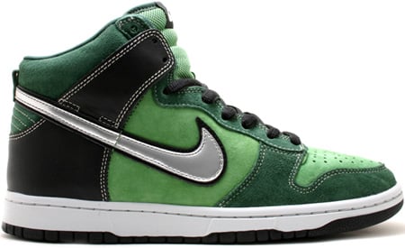 The Nike Dunk SB High Brut was designed after the Mens grooming product Brute aftershave. Featuring Green Nubuck, Metallic Silver swoosh, and a Black leather touch. The Nike Dunk SB High Brut released September 2007, and was very easy to find.