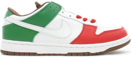 To accommodate Cinco De Mayo, Nike SB made a special Dunk dubbed Cinco De Mayo. Released on May 5th, 2005, which actually is Cinco De Mayo. The colors of the Nike Dunk SB Low Cinco De Mayo were picked by ESSJ, and as you can tell they represent Mexico’s Flag.