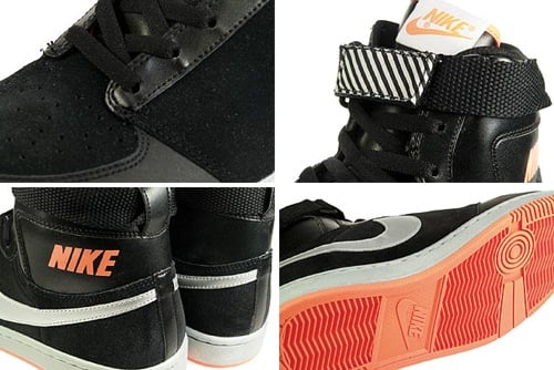 Aside from being a great athletic and academic institution of higher learning, Georgetown University also receives several Jordan Brand and Nike PEs- such as the Georgetown Hoyas Nike Dynasty high that hit House of Hoops locations last month. But the pair showed here might be slightly better suited for a Halloween night out. Pictured here is another Nike Dynasty high sporting a predominantly black upper with minimal orange accents such as on the outsole. But what is sure to grab your attention moreso is the metallic silver Nike swoosh because of its shiny nature. How do you like this colorway on the up-and-coming Nike Dynasty high silhouette? It’s already hitting select Nike retailers now, so you’ll have an opportunity to cop rather soon.
