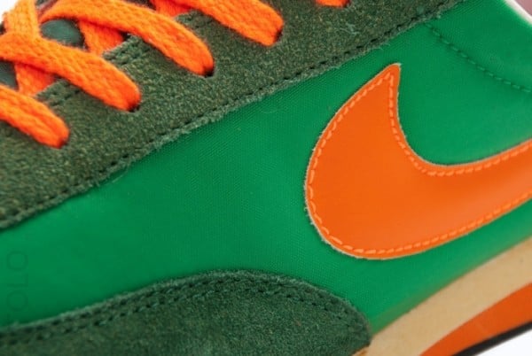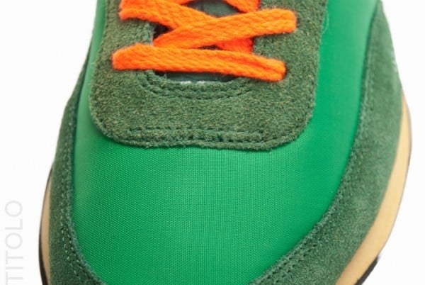 First up is a look at this Court Green/Orange colorway. Sporting NSW’s vintage treatment with a yellowed midsole, retro branding, a distressed black rubber outsole and a nylon tongue with exposed padding, the kicks come with a green nylon and suede upper alongside white leather lining, a matching heel tab and orange hits on the leather Swoosh, laces and heel tab branding.