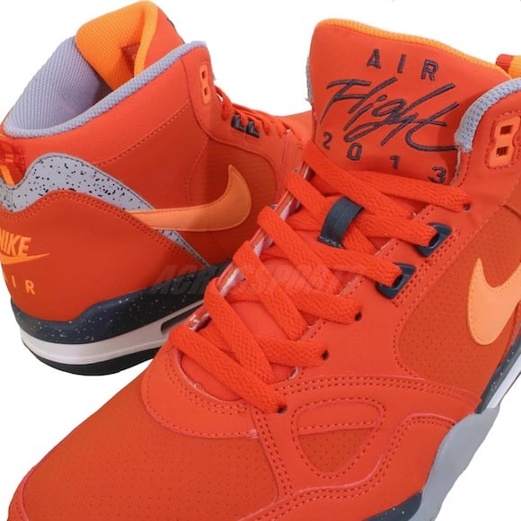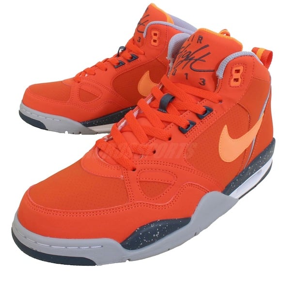 The closer we get to september, the more releases there are. Well, at least it seems that way. Nike prepares to take flight by releasing a new colorway for the Nike Flight 13 Mid. The Flight 13 is dressed up in a sweet bright orange leather that will certainly brighten up any room stepped into. The lightly colored swoosh is distinguished well, while the Flight 13 sits atop a speckled black mid-sole.