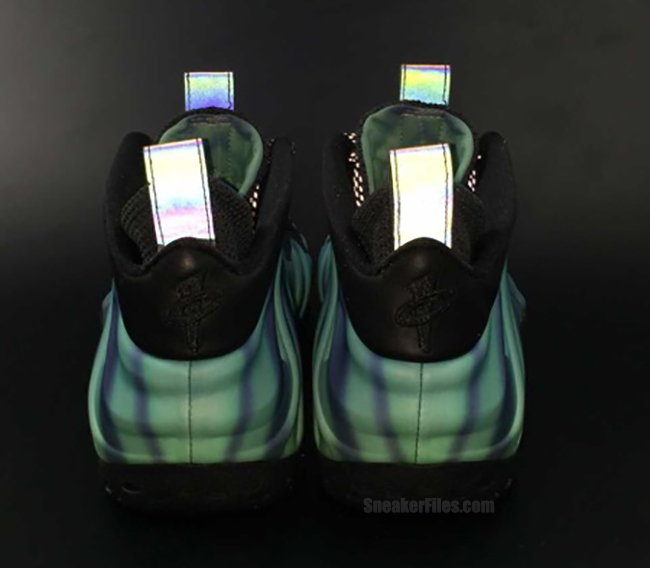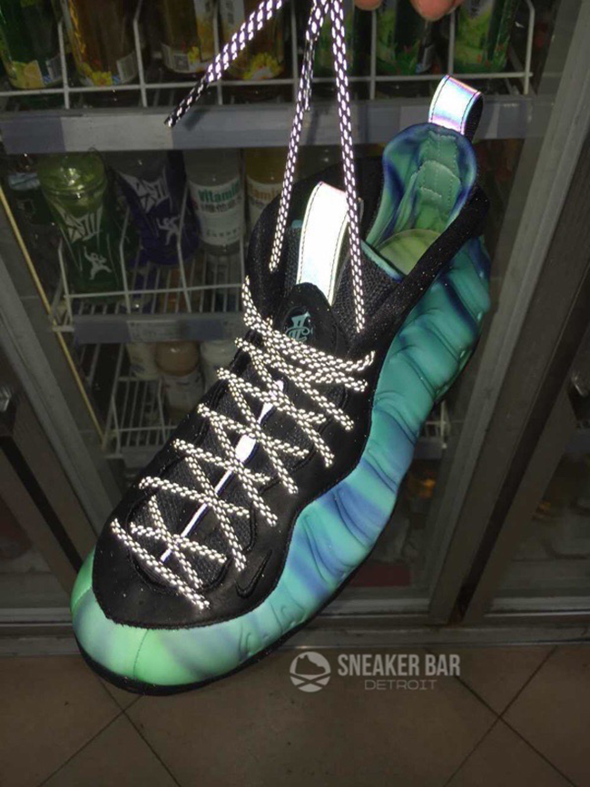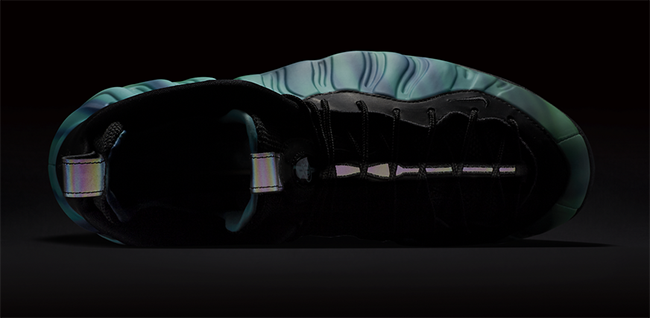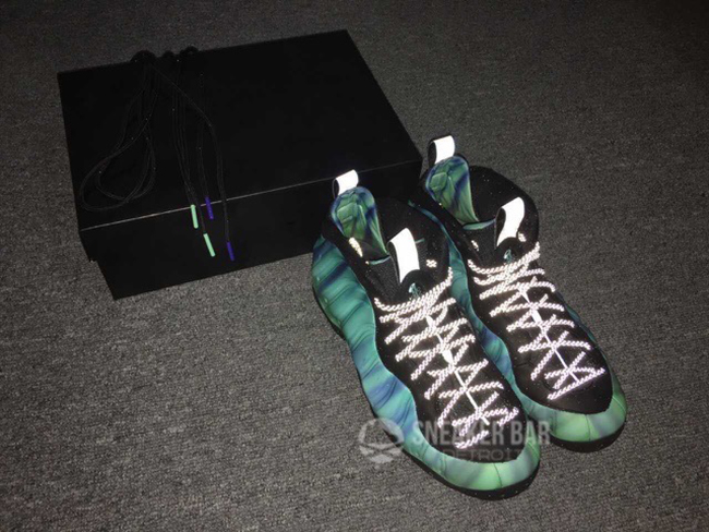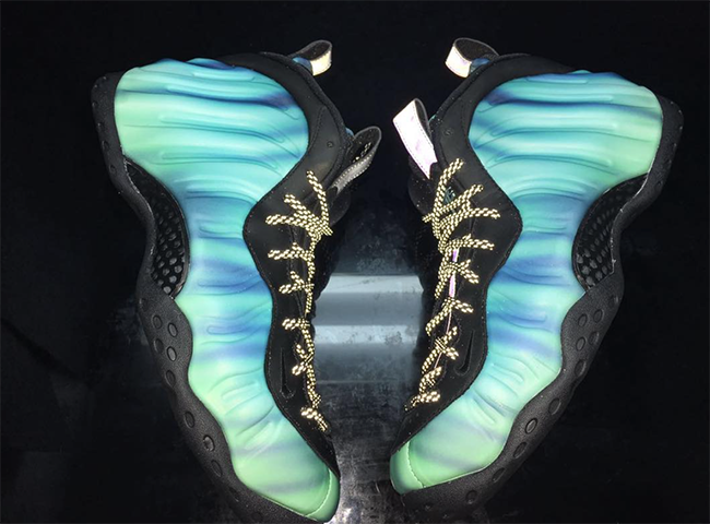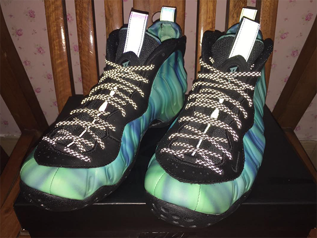 Update: New images of the ‘Northern Lights’ Nike Foamposite One show us that 3M reflective is used on the heel and tongue tab and also comes with a second set of laces. Out latest viewing is provided by US11 and realchickenwop.