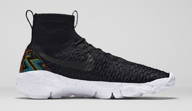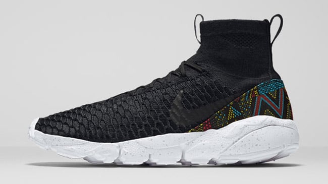 Resembling the other models included in Nike’s BHM collection, the Footscape Magista will use a predominate black base. Following is multiple colors forming a geometric graphic that is inspired by African artwork as well as the colors used. Following is a white midsole with a subtle speckled overlay.