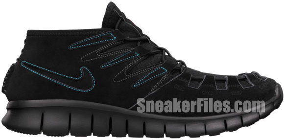 Featuring a black moc chukka-style upper of suede and mesh with matching elastic lacing, the kicks come with a Midnight Fog Free Run Phylite sole for flexible cushioning and sport turquoise contrast stitching throughout the upper.