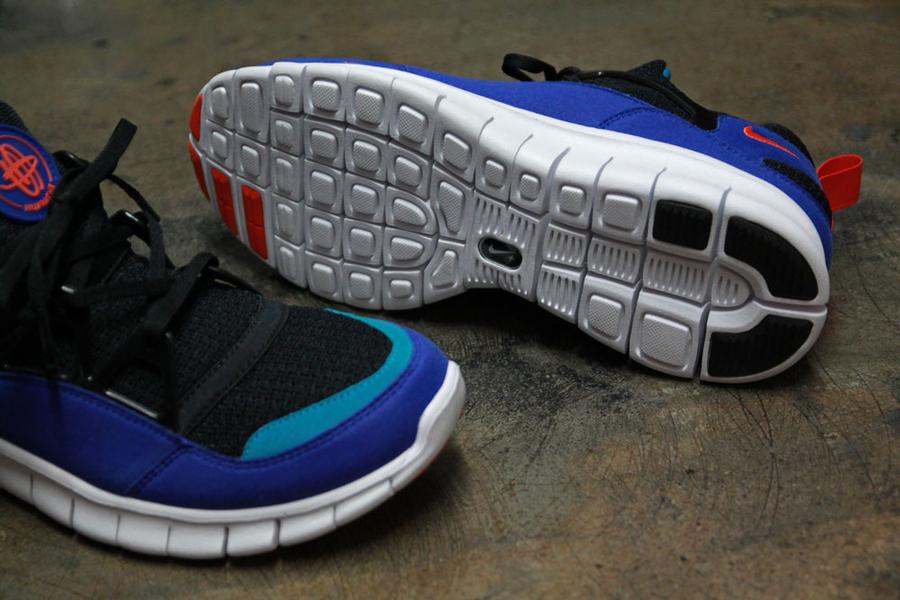 The latest silhouette to be hybridized with a Free Run Phylite sole, the Nike Free Huarache Light is now available. Pairing the OG Huarache Light upper with a white Free Run sole, the kicks see a Black/Team Orange-Concord upper of mesh and synthetics with turquoise accents on the lining and toecap. The Nike Free Huarache Light “Black/Team Orange-Concord” is now available in-store from Primitive.