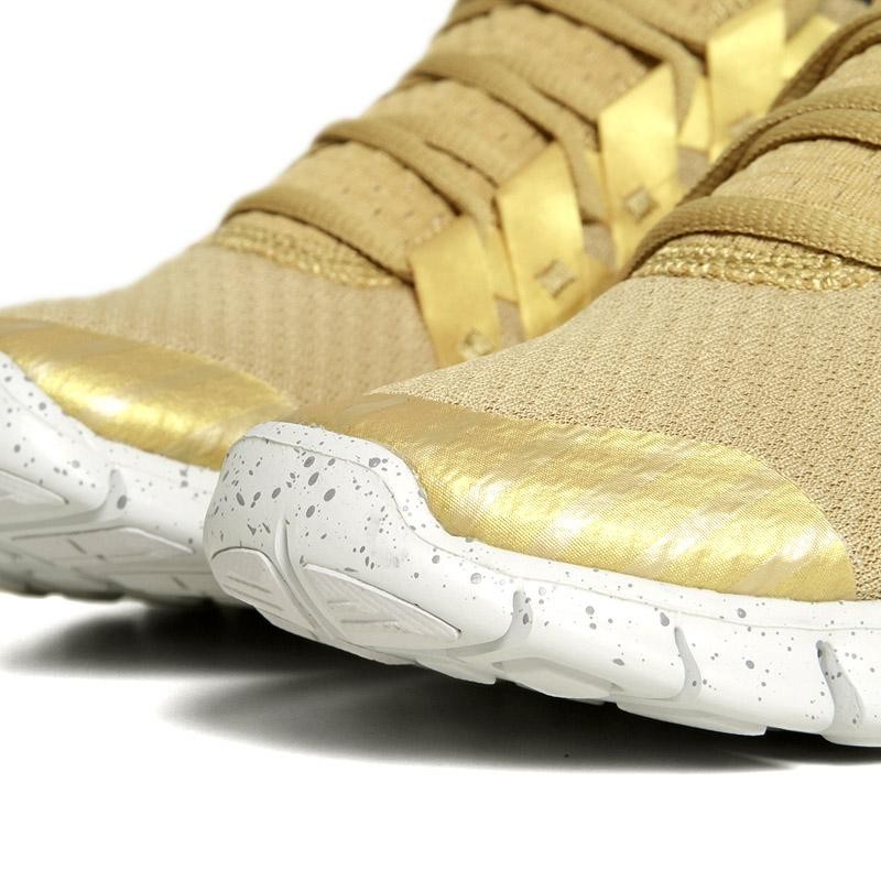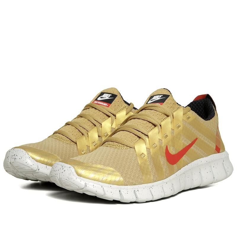 The Nike Powerlines+ NRG is new member to the Nike family for AW12. This performance lifestyle shoe features a number of Nike innovations, both the mesh upper and stabilizing powerlines construction sit above the popular Free outer sole. This particular limited edition all gold colour way was inspired by the London 2012 Olympics. The slightly shiny gold powerlines and red swoosh make this a bold but great looking sneaker.