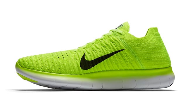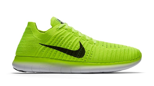 This Nike Free RN Flyknit features a Volt, Black and White color combination. Looking closer you can see they will use Volt through the uppers along with Flyknit while also landing on the tongue, liner and around the heel. Following is the use of Black which hits the Nike Swoosh and branding on the tongue. Completing the look is White that runs through the midsole and outsole with hits of Volt as well.