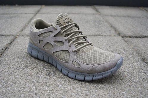 Exactly one month ago we brought our readers a look at the Nike Free Run 2 QS City Pack, which includes a number of colorways that draw inspiration from famous cities around the world. Today, we offer you a closer look at the London colorway, which comes in a two-tone cream upper with “fog” grey, speckled soles. Use these images to really see what this London colorway is about; and if you might work your overseas connects to try and scoop it up.