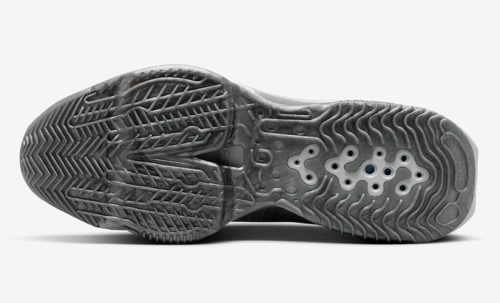 This Nike GT Jump 2 comes dressed in a Metallic Silver, Light Photo Blue, and Black color combination. Utilizing Silver throughout, the signature holographic oval with a Swoosh lands on the ankle. Black appears on the tongue, laces, liner, and heels with small accents of Blue. Other details include React cushioning and a Black rubber outsole.
