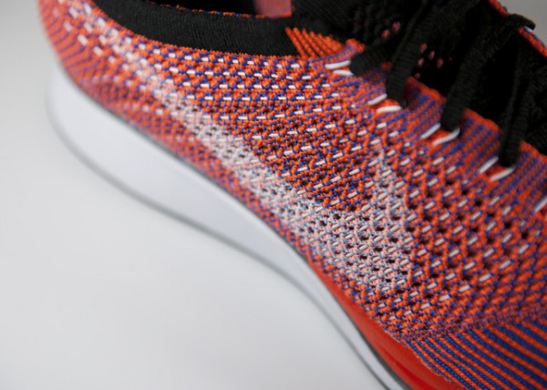 Decked out in a predominately orange Flyknit upper, the kicks sport additional hits of blue woven in throughout while the contrasting Swooshes are done up in white. Black appears around the collar and on the tongue, laces and outsole while the kicks sit atop a white and orange midsole.