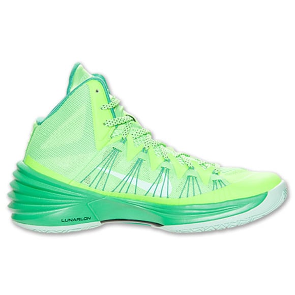 One of the best quality hooping shoes has dropped another flashy colorway so players can strut their stuff while they’re playing. Nike has dropped the 2013 Hyperdunk in “Pure Platinum” and then a lineup of eccentric colors within a few weeks and are now making available the “Flash Lime” and “Arctic Green” edition of the shoe. Still featuring the Dynamic Flywire technology and the lunarlon cushioning to absorb contact this shoe is a hoopers dream, or nightmare if they’re on your opponents feet. These are available at Nike retailers or online now at Finish Line for $140(US). Could you rock these flashy Nike Hyperdunk 2013 “Flash Lime/Arctic Green” on the court? Let us know in the comments section down below and stick to Sneakerfiles for more updates on everything sneakers!
