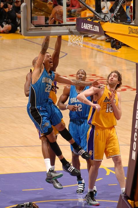 While most of his teammates were honoring Martin Luther King Jr. with special pairs of the Nike Zoom Kobe V, Pau Gasol did so using a different Nike basketball shoe. We already know that the Los Angeles Lakers big man enjoys balling in higher-top sneakers like the Nike Hyperize silhouette, as we’ve seen pairs of his own Player Exclusives designed for him. Last night Pau once again opted for sporting the Nike Hyperize, but this time they came in the same colorway as executed on the special edition Nike Zoom Kobe Vs that also paid tribute to Martin Luther King Jr. Enjoy pictures of the Nike Hyperize “Martin Luther King Jr. Day” in action after the jump. As with the Nike Zoom Kobe V, no concrete release information regarding this Nike Hyperize is known yet; however, we’ll bring you it should any come up. Which of the two exclusive MLK Jr. Day Nike basketball surprises do you think looks best?