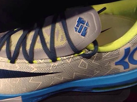 Joining the previously previewed geometric patter covered Black/Volt/Vivid Blue/Dark Grey Nike KD VI is this pair of Grey/Volt/Blue joints. Much like the aforementioned pair, these kicks sport the same new pattern throughout its grey based build. Throw in some vibrant hints of volt and blue and you have yet another exciting offering that is sure to register rather high amongst the sneaker community once they drop. With the black version scheduled to release on January 11th, we have no word on when you can expect to see these arrive at retailers. Check out another look after the jump and be sure to let us know if you are feeling what’s to come from the KD line.