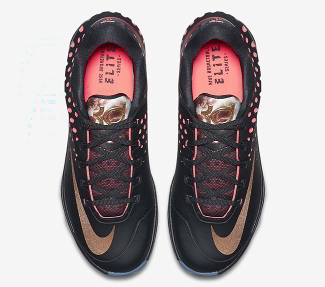 This Friday the last set of Nike Basketball Elite series will launch according to their initial press release. Doesn’t mean that others won’t come (think EYBL). With the release just days away, we now have a detailed look at the Rose Gold Nike KD 7 Elite.
