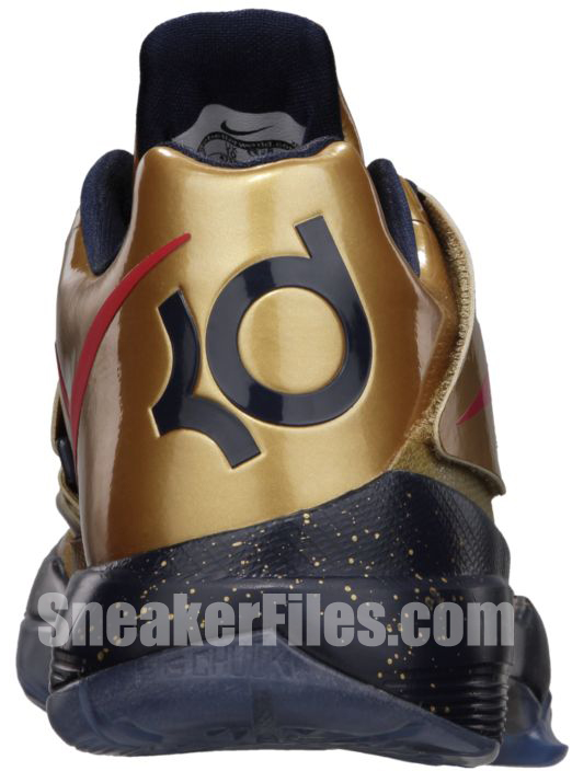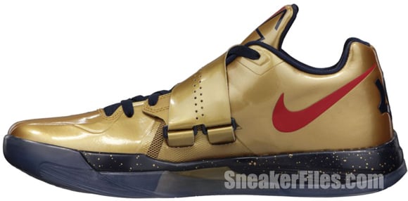 Nike basketball provides official imagery of the upcomingย โGold Medalโ Nike Zoom KD IV. Inspired by Team USAโs gold medal at the 2012 Summer Olympic Games in London, the Metallic Gold/University Red-Obsidian-White edition of Durant’s signature will be available this Saturday, September 29, for $95. As with the LeBron X+ Sport Pack, phone orders will not be accepted for the KD IV.