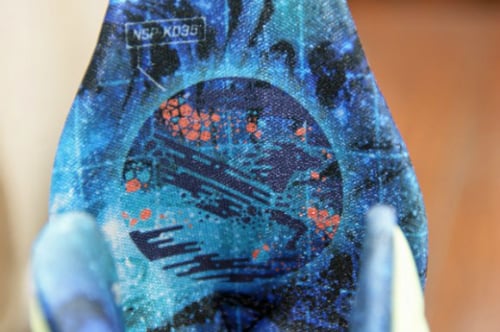 Featuring galaxy-inspired graphics throughout, this special edition Nike KD V (5) will carry liquid lime, obsidian, sport turquoise, and total crimson accents atop its Hyperfuse build upper and inner lining. Adding a speckled midsole and back heel counter, fans of the Kevin Durant shoe can enjoy this shoe’s detailed signature tongue branding and custom “Area 72” insole. And to top it off, these kicks come with a spacely shoe box and tissue paper.