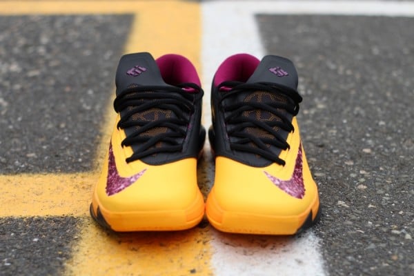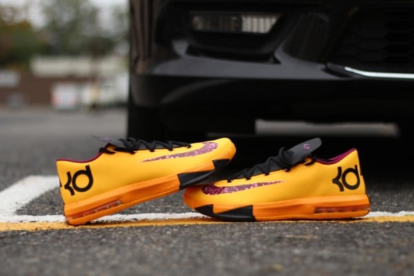 Hitting retailers now, this signature model will hone in on KD’s all-time favorite childhood snack by working in laser orange uppers to represent peanut butter and raspberry red accents that resemble grape jelly. Offset by black and gold color-blocking, will you be picking up this new Nike KD VI (6) this weekend?