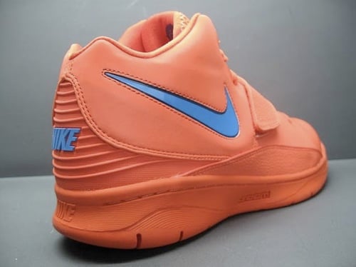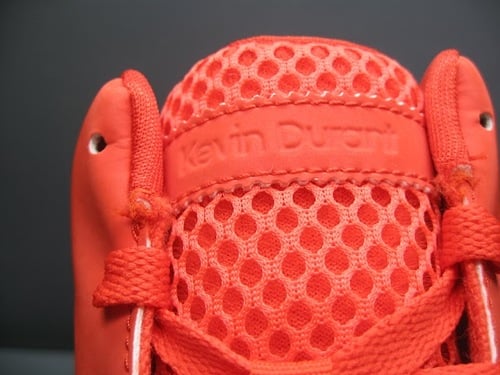 Kevin Durant spent one year in Texas before testing his talents against NBA-caliber athletes. One year was all he needed. Already tearing it up on the hardwood floor, NBA sophomore Kevin Durant is also making noise in the sneaker world with Nike’s help. After introducing the lengthy baller’s second signature sneaker, the Nike KD2, a pair in a Creamsicle colorway was prepared for him and debuted against the Dallas Mavericks. But unless you’ve been lucky enough to score a pair, then you might not have gotten as good a look at them as you might have liked. Well, now there are detailed shots of this sneaker online that help highlight many of the shoe’s details. For example, on the midfoot strap and just above the midsole you will notice what resembles cement print in the creamsicle color. So check out detailed pictures of the Nike KD2 after the jump, and take a glance at what the reflective 3M material on this sneaker does depending on the angle you’re looking at it from and at which the light is hitting it.