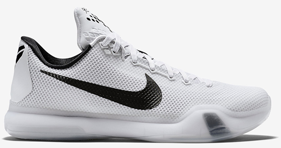 The Nike Kobe 10 shown is being labeled as ‘EP’, at the time of writing, what it stands for isn’t known but we believe it could be linked to a Team Bank series, which is basically color schemes that can match with team jerseys. The newest model comes with a predominate white upper, black accents across the liner, swoosh and other branding while metallic gold hits the sole.