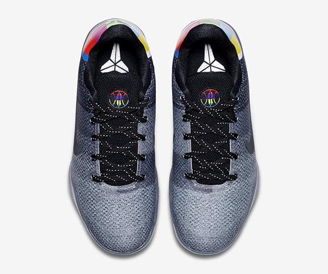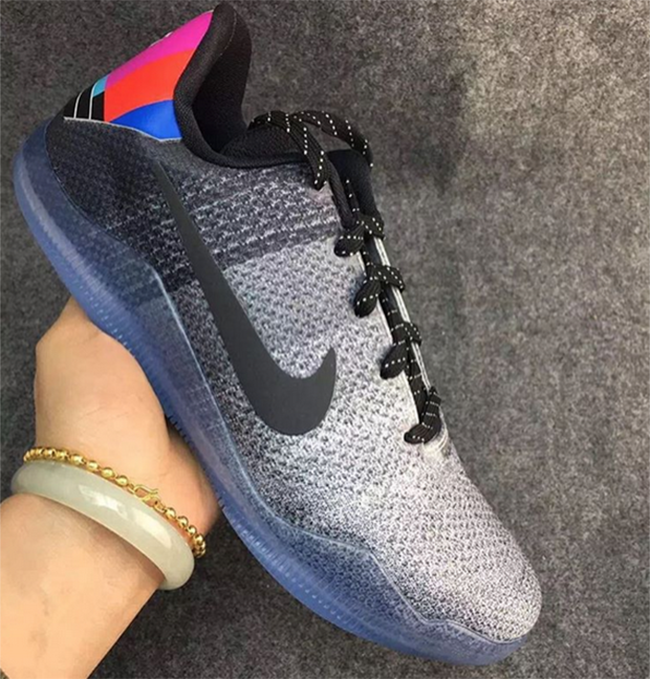 As you can see, the Nike Kobe 11 features Black and Grey through the Flyknit upper which gradients from Grey to Black going towards the heel. On the heel is the off air TV design you probably see late at night while Kobe’s branding is done in silver. The tongue also has a unique graphic using multiple colors. They are then finished off with a translucent midsole which extends to the sole.