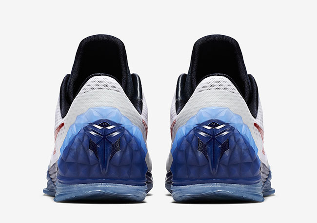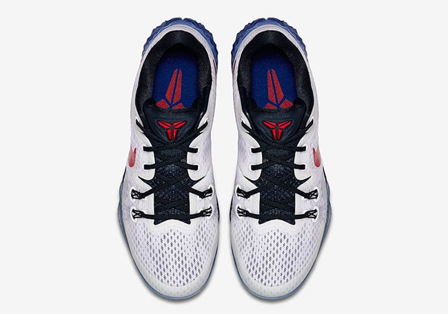 This Olympic USA inspired Nike Kobe Venomenon 5 features a White, Team Red and Midnight Navy color combination. Using White through the base along with Red and Midnight Navy accents, they are completed with a translucent outsole and a hint of Ice Blue by the heel.