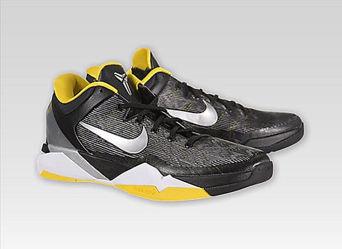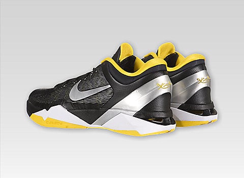 The seventh installment of the Nike Kobe line up is now available online. This model features a removable andย interchangeable inner booties, including an “Attack Fast” Phylon/Zoom combo insert and an “Attack Strong” Cushlon/ankle strap insert.