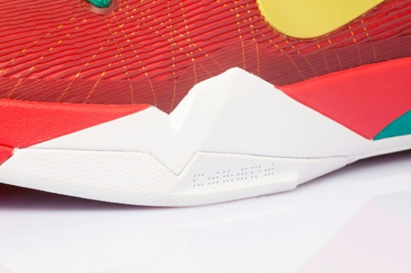 Inspired by Chinese Kung Fu, speed and agility have both been integrated into the Kobe VII with the options to “Play Fast” or “Play Strong”. ย Additionally, as Kobe famously spent much of his childhood in Italy, the kicks sport the green, white, and red colorway of the Italian tri-color. ย Lastly, hits of yellow on the branding really set these off, as a yellow dragon adorns the heel of the shoe.
