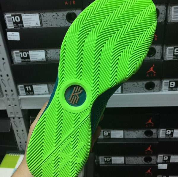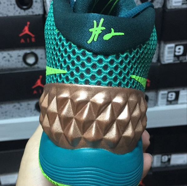 The Australia Nike Kyrie 1 features a similar green through the uppers like the Flytrap. On the outsole, # 2 at the heel, swoosh and tongue branding is the use of volt. Wrapping the heel counter is a bronze like shade which stands out from the uppers.