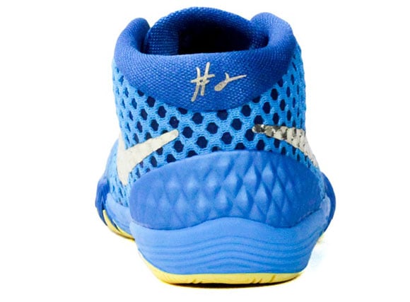 This pair of Nike Kyrie 1 GS features blue hyperfuse dressed on the uppers that also lands on part of the midsole and heel. The brand opted for volt to hit the laces, parts of the midsole that leaks down to the sole. Standing out from it all is the metallic gold swoosh slapped on the sides.