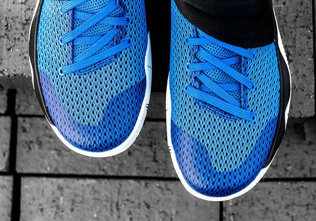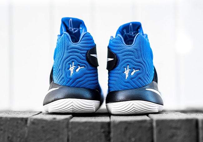 Featuring a Hyper Cobalt, Metallic Silver and Black color theme which is on-point with Duke. Using predominate blue on the base which includes the mesh and around the heel, black is then placed through the mudguard and mid-foot strap. Other details include white on the outsole, sole, Nike and Kyrie branding.