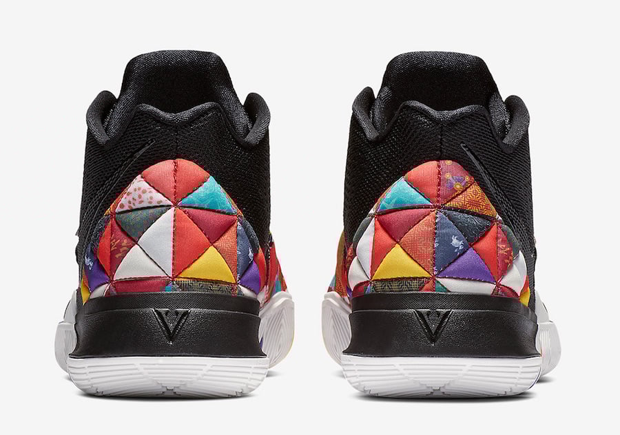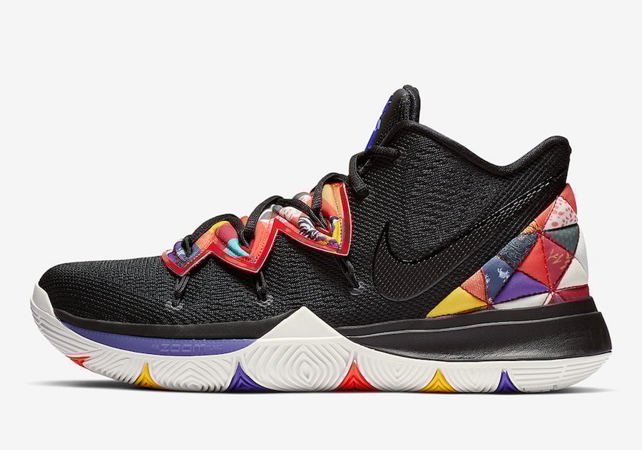 This Nike Kyrie 5 comes dressed in a Black and Multi-Color color combination. Sticking out the most is Bai Jia Yi pattern around the heel as well as the Flytrap shroud. Featuring a Black base while White and multiple shades land on the outsole to complete the look.