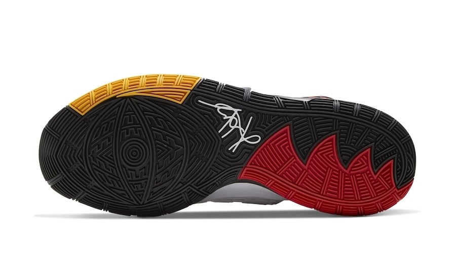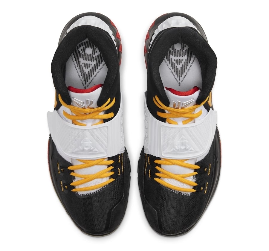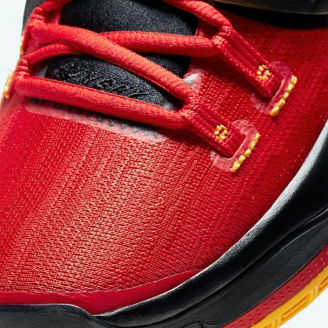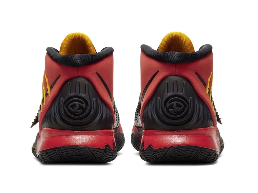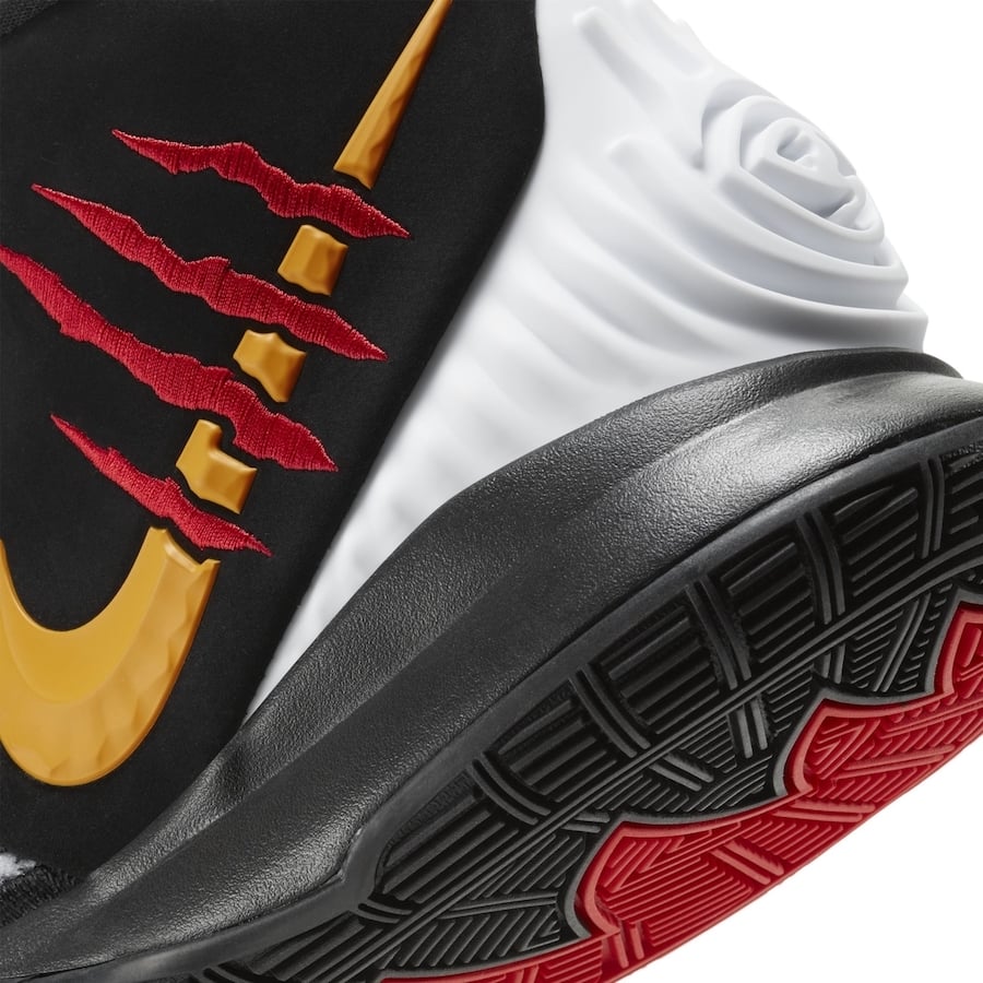 This Nike Kyrie 6 comes dressed in a Red, Black and Yellow color combination. Utilizing Red across the base while Black and Yellow accents is spread throughout. Following we have the signature four scratch marks in Yellow across the Swoosh on the panels. Finishing the look is Black, Yellow and Red across the rubber outsole.