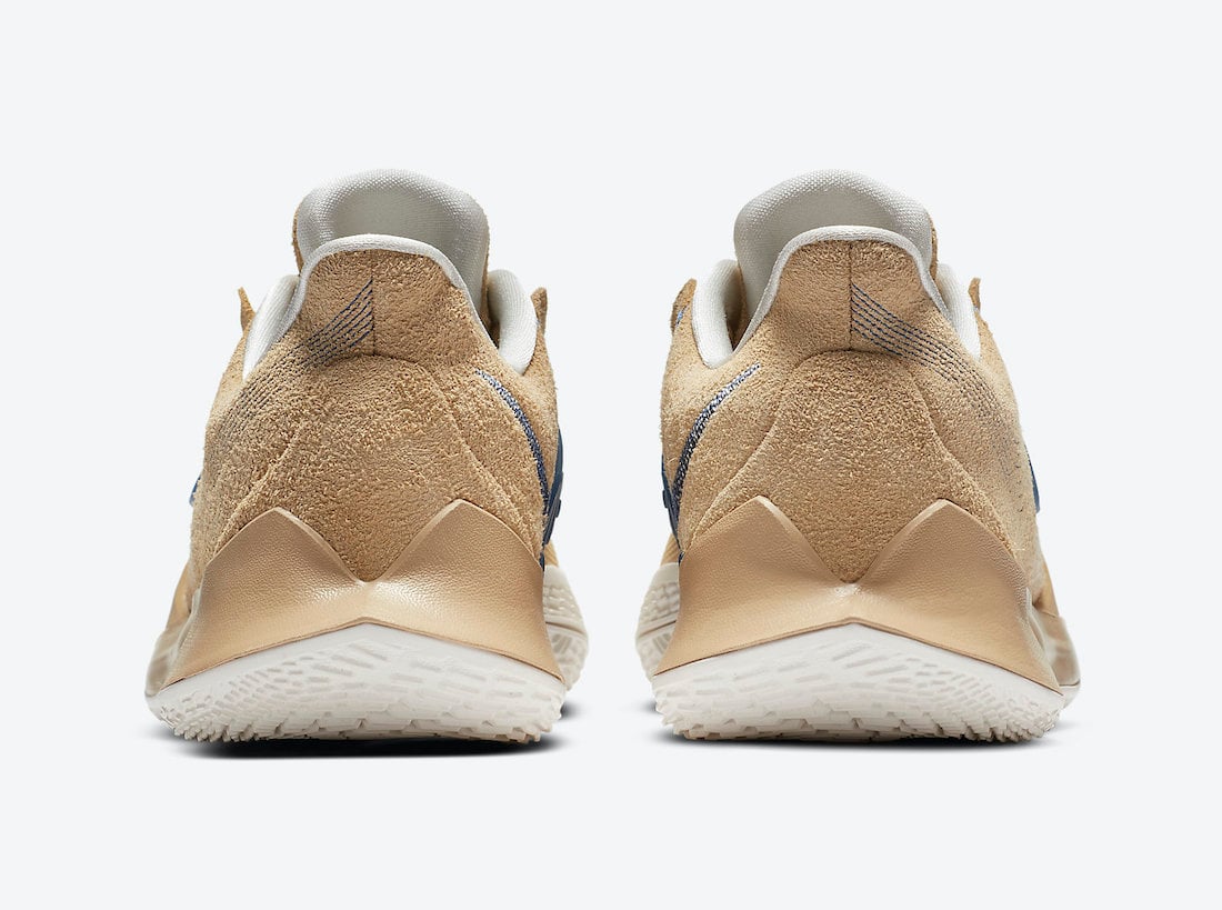 Looking closer the Nike Kyrie Low 3 โSashikoโ comes dressed in a Sesame, Sail and Mystic Navy color combination. This pair comes highlighted with the Japanese technique of decorative stitching while the design lands on the base of the mid-foot strap and forms a layered Swoosh by the ankle. Paying tribute to Kyrieโs love for Nike Skateboarding, on the insoles we have Nike BB branding which mimics Nike SBโs logo.