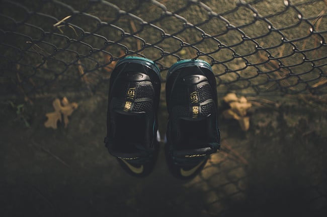 Dressed in a black, metallic gold, anthracite and radiant emerald color theme. Through the base is mainly done in black with carbon fiber landing on the Hyperposite wing. Metallic gold fills in the swoosh across the toe box and medial side and LeBron branding on the tongue. Following up is radiant emerald which hits the laces and part of the outsole. The front part of the outsole will come with an icy tint.