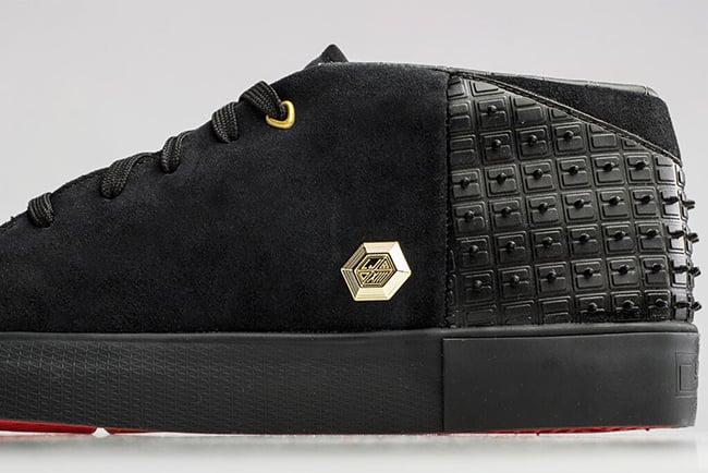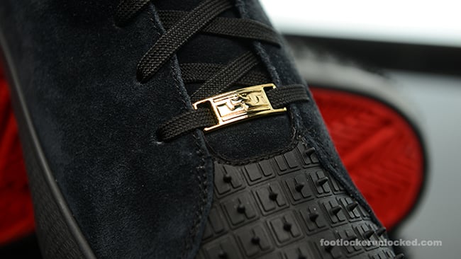 It’s obvious what Nike is doing here. Any Lifestyle release is intended for off-court use, but with the 13s the brand is going after a more luxury feel but with a better price tag. Using black through the uppers with suede hitting the paneling. They also will pay tribute to Akron by using the ‘Rubber City’ tire thread on the toe box and heel making them resembling something from Christian Louboutin. Coming with a red bottom also ties this look-a-like to the high end shoes. Other details include a a gold top eyelet and charm resting on the side.