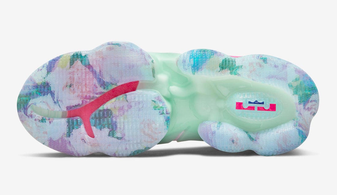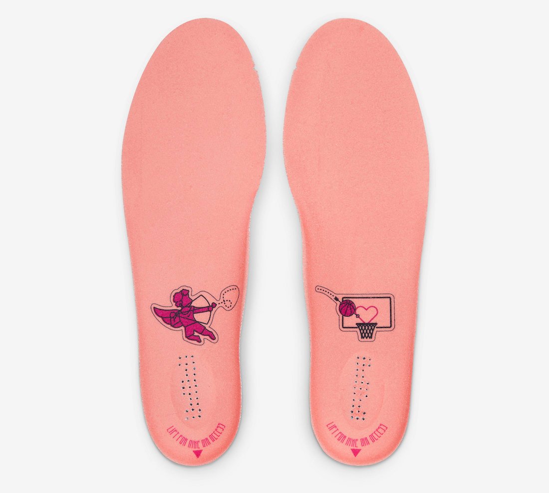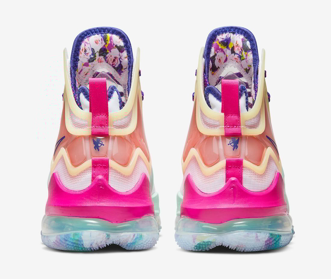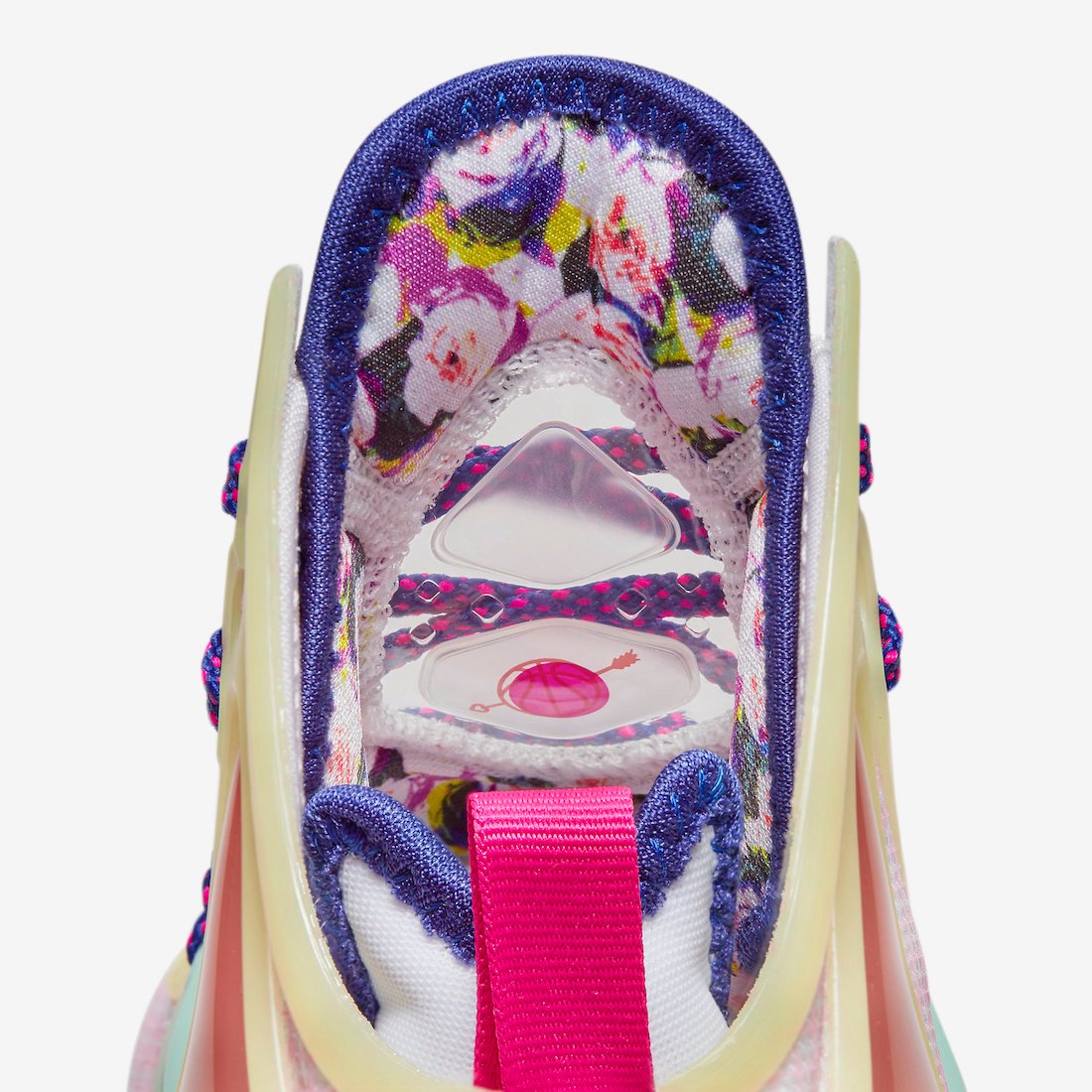 Going over this Nike LeBron 19, it features special details that include florals on the inside of the tongue and bootie while a cherub logo lands on the heel. Each pair also comes with heart-shaped hangtags and special graphics on the insoles.