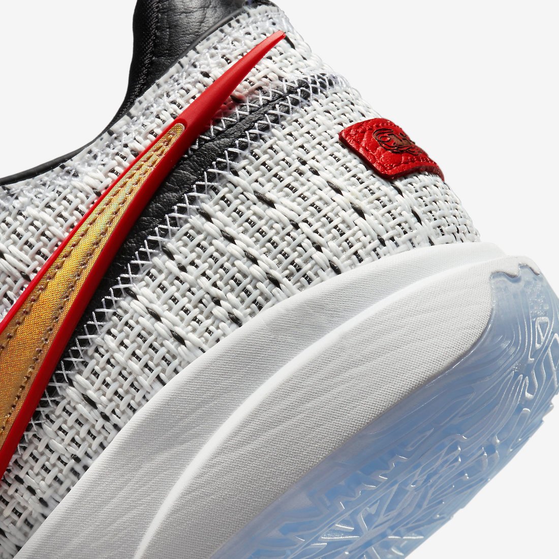 This Nike LeBron 20 features a White, Metallic Gold, Black, University Red, and Wolf Grey color combination. Utilizing White knitting across the upper, double-stacked Swoosh logos on the lateral, and โXXโ lace dubraes. Other details include a graphic across the forefoot, insole branding, and a multidirectional icy translucent outsole.