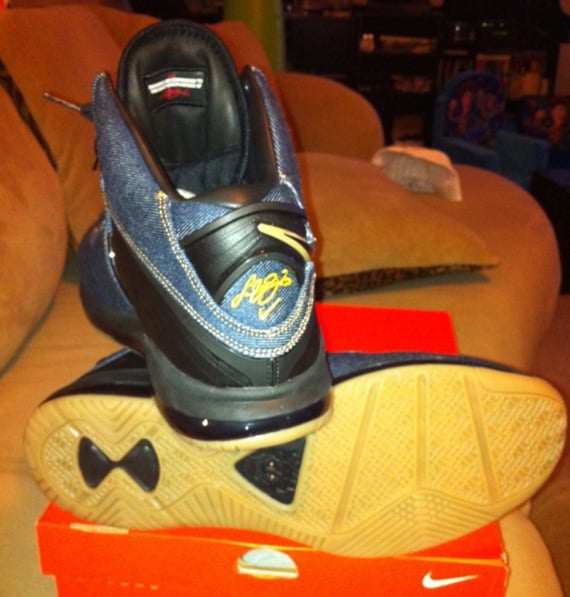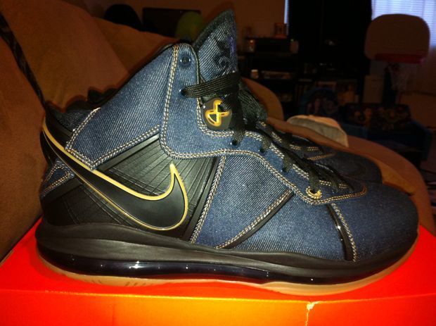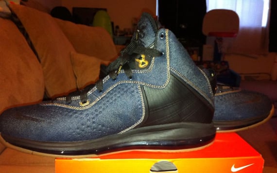 Today, we show you the LeBron 8 ‘Denim’ in more angles and the possibility ofย availabilityย online. This features images with flash, showcasing the denim material, accent stitching and gum sole.