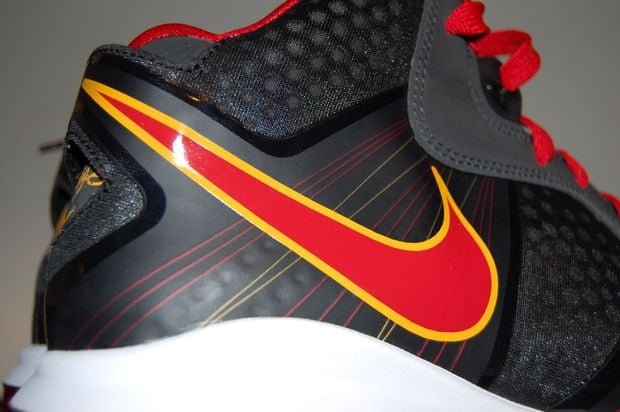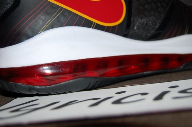 This PE features an all black upper, red and maize Flywire strands, Swoosh and accents all around that brings out the Heat colorway we all know him to represent. The shoe is topped off with red laces and a red 360 air unit. Thanks to Lyricistfan for the images.