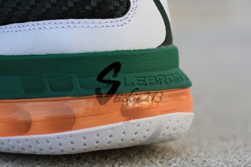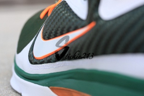 After getting our first look at the perfectly colored Miami Hurricanes PE colorway of the Nike LeBron 9, the hype behind this latest Nike LeBron design seemed to instantly multiply. For Miami Hurricanes fans, these are looking like a must-have. However, if you’re still on the fence, perhaps this set of images can help you better decide once and for all whether these are worth your time and money. What do you think?