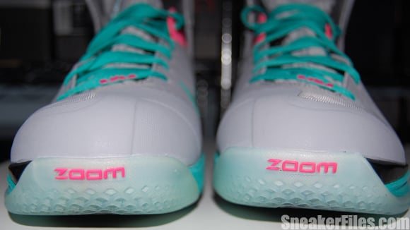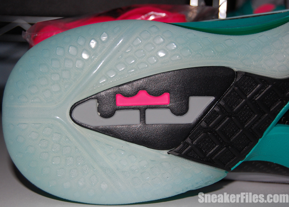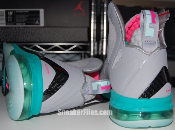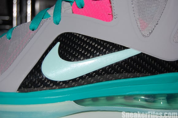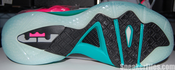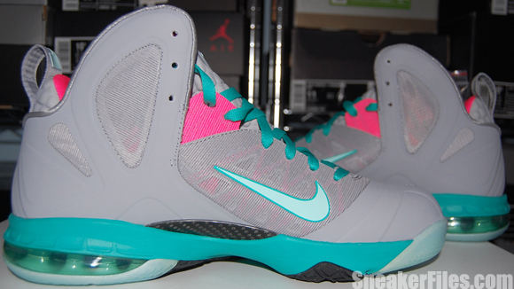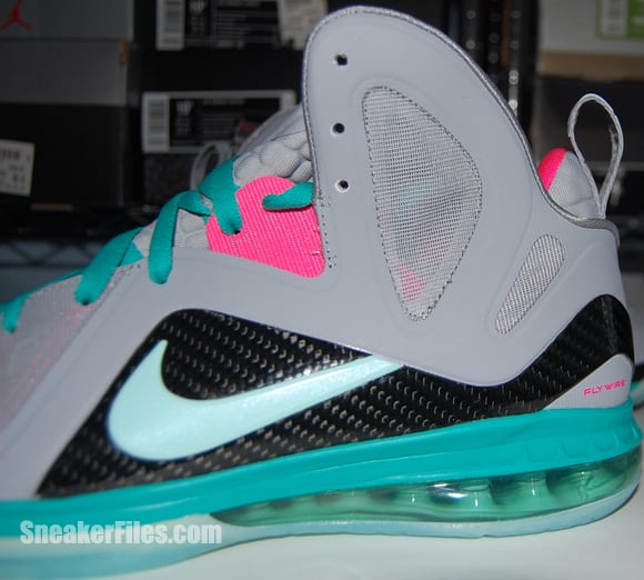 Complete with sets of New Green and Pink Flash laces, the South Beach Nike LeBron 9 PS Elite is set for a release on June 2, but can be picked up early via Kicksole.