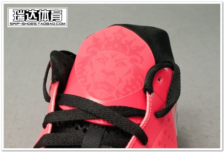 Donning the familiar Solar Red colorway popularized in the LeBron signature line by last year’s LeBron 8 V2 Low, the kicks see a bright red synthetic upper alongside contrasting black accents on the lining, laces, rubber outsole, midsole and branding.