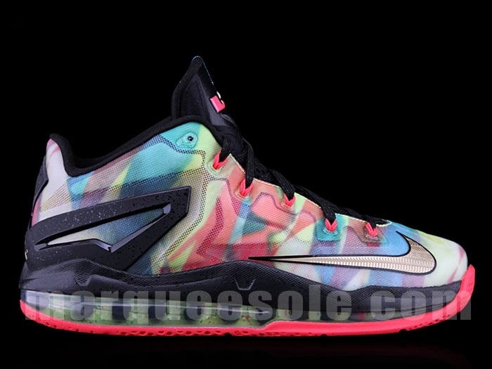 Expected to debut overseas next month, the “Multicolor” Nike LeBron XI (11) Low is hitting select retail House of Hoops by Foot Locker stores next weekend. What may still be a mystery to some as LeBron did not win his 3rd title, this is the exact pair that would’ve been all over your screen had he done just what the world had expected. What turned sour in the end, Nike has decided to release the kicks anyway. Are you getting a pair?