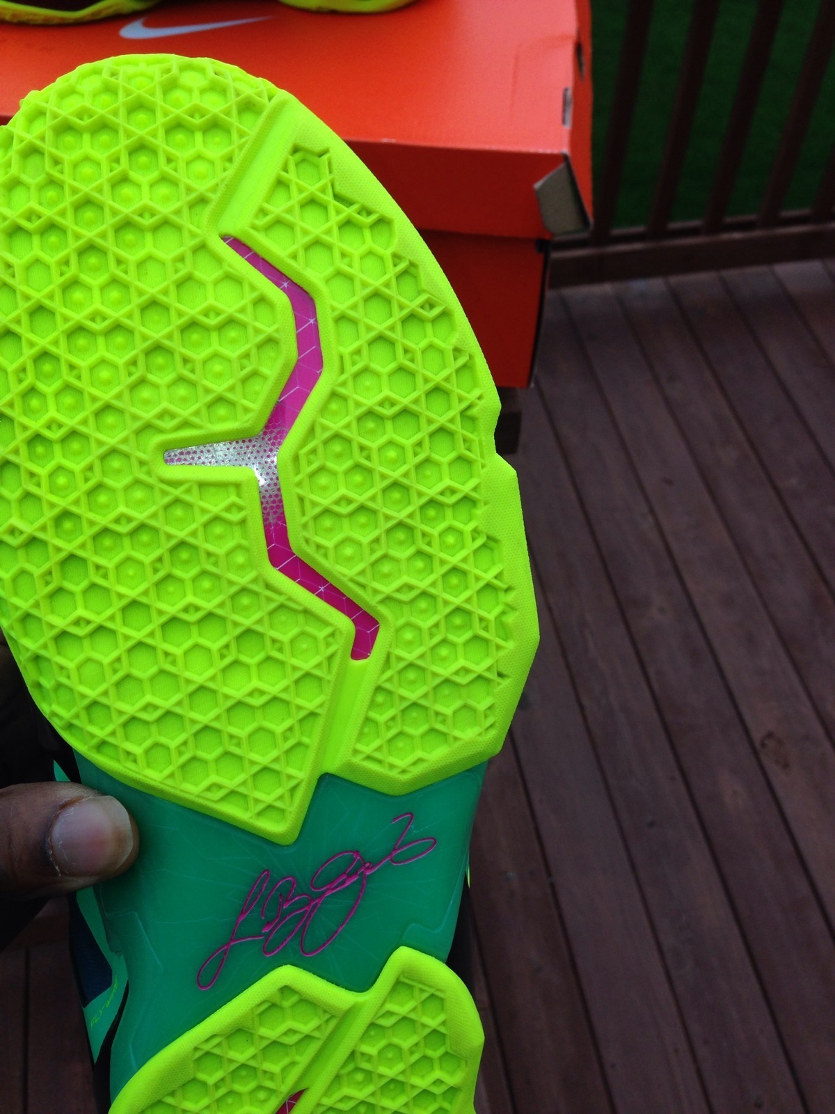 Designed to resemble the skin, mouth, and eyes of a Tyrannosaurs Rex dinosaur, this Nike LeBron XI (11) will likely displays shades of volt, gamma green, armory slate, pink, and a metallic black base. Complete with LeBron lion head lace jewels and pink Flywire, what are your thoughts on the “T-Rex” thus far?