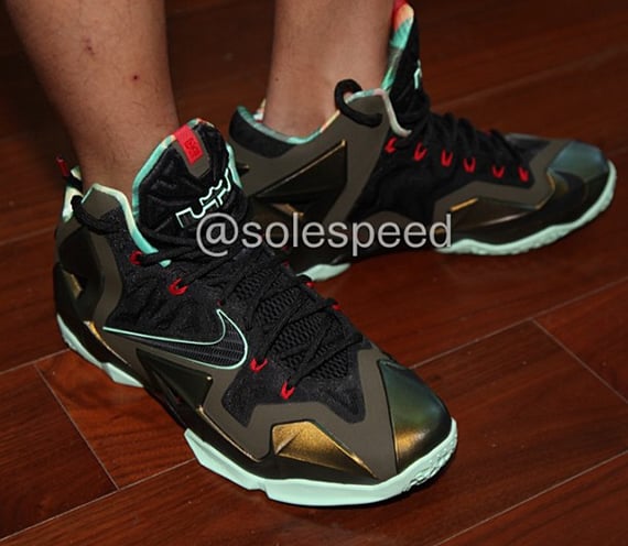 Looks like the “Armory Slate” colorway for the Nike LeBron XI is receiving even more love. Having already provided all you sneakerheads with a detailed 360 look at the previously mentioned sneaker, we now have a quick on-foot look to share with you all courtesy of Solespeed. Amidst its innovative Armorposite upper, it is indeed the soft hints of blue and red that provide this almost stealthy pair of kicks with a tasteful touch of character. Check out the images after the jump and be sure to keep your browsers locked to SneakerFiles for further updates.